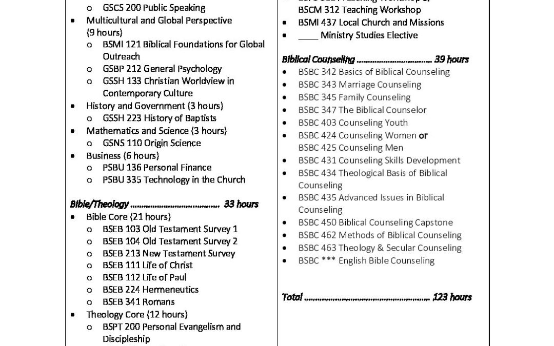 2022-23 Bachelor of Science in Biblical Counseling Degree Audit by Kevin | Aug 1, 2023 | 0 commentsSubmit a Comment Cancel replyYou must be logged in to post a comment.